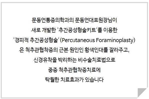 중증 척추관협착증 치료에 탁월한 효과를 보이는 추간공성형술을 소개합니다