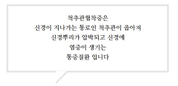 "척추관협착증"진단을 받게 됩니다.