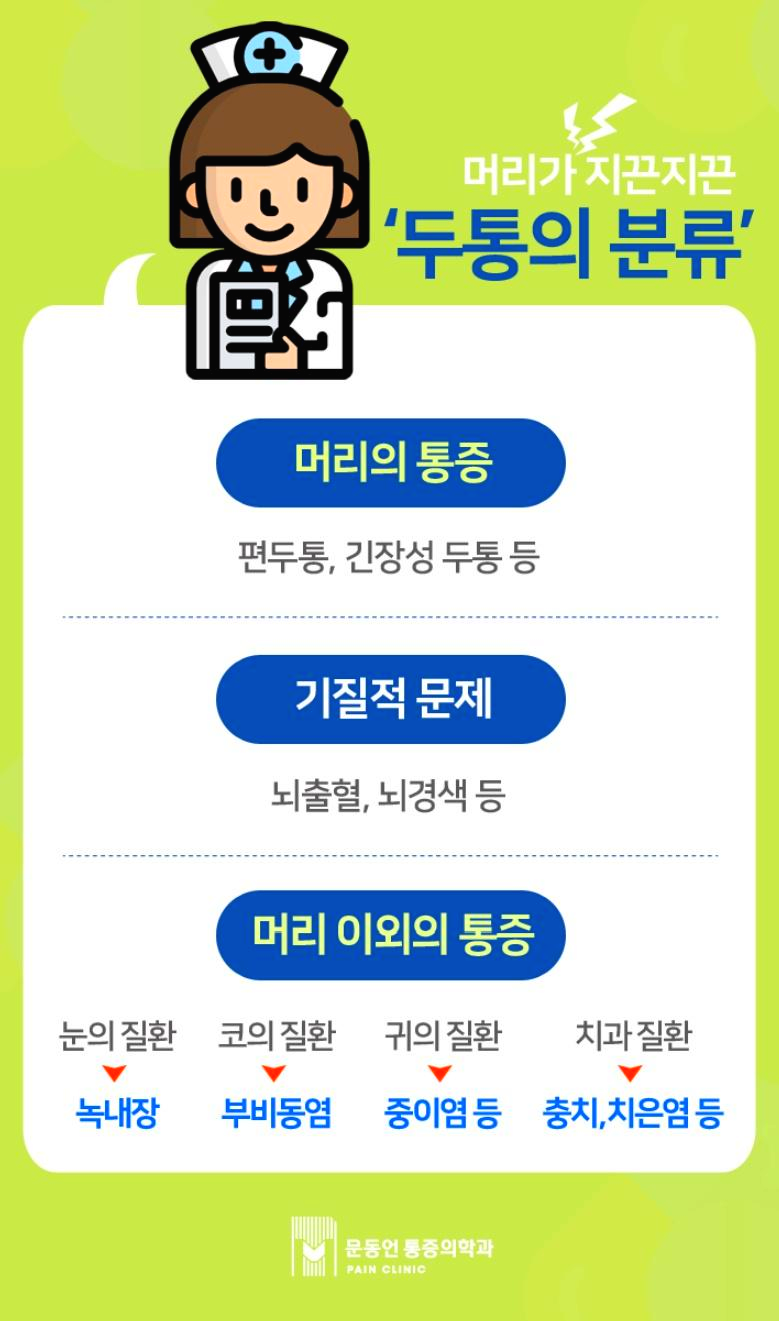 두통의 종류에 대해서 알아 보겠습니다.