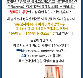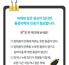 족저근막염원인 썸네일형 리스트형 봄철 급증하는 족저근막염 안녕하세요. 문동언통증의학과입니다.오늘은 봄철 급증하는 질환인 족저근막염에 대해 알아보겠습니다. 봄은 야외활동이 많아지는 계절입니다.기온이 부쩍 오르면서 봄나들이를 가는 사람들이나그동안 하지 못했던 등산과 운동 등의 야외활동을 즐기는 사람들이 증가했습니다. 야외활동을 건강하게 즐기기 위해서는 대표적인 발 질환인 '족저근막염'을 주의하셔야 합니다. 족저근막염, 어떤 질환일까요? 봄철에 급증하는 족저근막염은발뒤꿈치뼈에서 발바닥 앞 쪽으로 이어지는 족저근막에 미세한 손상이 반복적으로 가해지면서 염증이 나타나는 질환을 말합니다. 주로 운동을 많이 하는 운동선수들이나하이힐, 플랫슈즈 등을 즐겨시는 여성들에게 많이 나타나는 질환이지만,취미로 운동을 하는 일반인들이 많아지면서 족저근막염을 호소하는 사람들이최근들어 늘.. 더보기 발바닥 통증 족저근막염 예방하기 안녕하세요. 문동언통증의학과입니다.오늘은 족저근막염의 예방 방법에 대해 알아보겠습니다. 문동언통증의학과 홈페이지 척추관협착증 무료 소책자 신청하세요. 더보기 족저근막염 운동선수에게만 생길까? 족저근막염 원인 안녕하세요. 문동언통증의학과입니다.오늘은 족저근막염의 원인에 대해 알아보겠습니다. 족저근막염은 마라토너나 축구선수처럼운동을 많이 하는 남성들이 걸리는 경우가 많습니다. 하지만 운동선수뿐만 아니라운동을 즐겨하는 젊은 층에서도 많이 발병하고 있습니다. 생소한 이름이지만 우리가 일상에서 많이 겪는 질환으로,과도하게 족저근막을 사용할 경우염증으로 인해 통증이 발생합니다. 과체중, 오래 서있는 일을 할 경우, 평발, 오목발 등족저근막염의 원인은 다양합니다. 하지만 해부학적 이상보다는발의 무리한 사용이 원인이 되는 경우가 훨씬 많습니다. 하지만 족저근막염의 근본적인 원인은 족저근막의 섬유화입니다. 문동언통증의학과 척추협착증 무료소책자 신청하기 더보기 발바닥이 아픈 족저근막염 안녕하세요. 문동언통증의학과입니다.오늘은 족저근막염에 대해 알아보겠습니다. 족저근막이란 발가락 기저 부위에 붙은 강하고 두꺼운 섬유띠를 말합니다. 이 족저근막에 반복적인 미세손상이 가해져 염증이 발생한 것이 족저근막염입니다. 발바닥을 가로지르는 족저근을 둘러싼근막이 당겨지면서 통증을 초래하는 병으로특별한 원인없이 또는 심한 운동 후에 통증이 유발됩니다. 중년에게 흔하게 발생하며,평발이나 오목발처럼 해부학적 이상이 원인이 되기도 합니다. 딱딱한 장소에서 충격을 주는 운동이나무리한 운동을 하는 경우에도각별한 주의가 필요합니다. 바닥이 얇은 신발이나 하이힐을 자주 신는 분들도주의하셔야 합니다. 문동언통증의학과 홈페이지 척추협착증 무료소책자 신청하기 더보기 발뒤꿈치 통증 유발하는 족저근막염, 지방패드증후군, 아킬레스건염 발뒤꿈치 통증은 족저근막염일 가능성이 가장 크지만, 족저근막염 외에도 발뒤꿈치 통증을 유발하는 질환이 있습니다. 바로 지방패드증후군과 아킬레스건염이 있습니다. 오늘은 발뒤꿈치 통증을 유발하는 족저근막염, 지방패드증후군, 아킬레스건염에 대해서 알아보겠습니다. 1.족저근막염 족저근막염은 발바닥을 세로로 가로지르는 족저근을 둘러싼 근막(족저근막)이 당겨지면서 통증을 초래하는 병입니다. 발뒤꿈치 통증의 가장 흔한 원인이 되는 질환이죠. 족저근막염이 왜 생기는지 정확한 원인은 아직 밝혀져 있지 않습니다. 발뒤꿈치뼈(종골)와 이어진 족저근막 부위의 미세 손상에 의해서 족저근막과 그 주위에 염증이 일어나 발생하는 것으로 추정하고 있습니다. 중년에게 흔하며, 마른 사람보다 비만한 사람에게 잘 생깁니다. 편평족(발바닥의.. 더보기 족저근막염 Plantar fasciatis 원인과 치료 안녕하세요. 문동언통증의학과입니다. 오늘은 족저근막염의 원인과 치료방법에 대해서 알아보겠습니다. 족저근막염은 발바닥을 세로로 가로지르는 족저근을 둘러싼 근막(족저근막)이 당겨지면서 통증을 초래하는 병입니다. 족저근막염이 왜 생기는지 정확한 원인은 아직 밝혀져 있지 않습니다. 발뒤꿈치뼈(종골)와 이어진 족저근막 부위의 미세 손상에 의해서 족저근막과 그 주위에 염증이 일어나 발생하는 것으로 추정하고 있습니다. 중년에게 흔하며, 마른 사람보다 비만한 사람에게 잘 생깁니다. 편평족(발바닥의 아치가 비정적으로 낮은 평발)이나 요족(발등이 높이 올라온 오목발)일 때도 족저근막염에 걸릴 위험이 높습니다. 통증은 대개 뒤꿈치 안쪽(엄지발가락 쪽)에서 시작되며, 발뒤꿈치의 바닥에서 발의 안쪽 가장자리를 따라 퍼집니다. .. 더보기 이전 1 다음