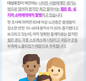 ebs명의 썸네일형 리스트형 대상포진의 발진과 치료 안녕하세요. 문동언통증의학과입니다. 오늘은 대상포진의 발진과 치료방법에 대해서 알아보겠습니다. 대상포진일 때의 피부 발진은 수두-대상포진 바이러스가 침범한 지각신경 분포를 따라 띠 모양으로 나타나는 특징이 있습니다. 또한 척추를 중심으로 봤을 때 중앙선을 넘지 않고 몸 한쪽에 대개 나타나게 됩니다. 초기에는 붉은 발진 여러 개가 한 곳에 몰리며 나타납니다. 12~24시간 뒤에는 발진이 수포가 되고, 3일째쯤 수포가 농포로 바뀌죠. 대개 7~10일이 지나야 딱지(crust)가 생기며 치유됩니다. 평균 발진 기간이 약 2~3주일이 됩니다. 대상포진일 때 통증은 가볍게 시작하여 점차 심해집니다. 나중에는 옷에 닿기만 해도 발작적 통증을 느끼는 ‘이질통’이 나타나기도 합니다. 다양한 느낌의 통증이 나타나는데, .. 더보기 대상포진의 원인과 증상 안녕하세요. 문동언통증의학과입니다. 오늘은 대상포진의 원인과 증상에 대해 알아보겠습니다. 대상포진은 예전에는 나이든 사람에게만 생기는 병으로 알려져 왔지만 최근 들어서는 젊은 층 심지어 소아에게까지 발병하고 있습니다. 한 조사에 의하면 60세 이상 노년층은 발생율이 감소한 반면 10~40대 환자수가 50% 증가했다고 보고되고 있는데, 아직 정확한 통계자료는 없지만 젊은 층도 각종 스트레스에 시달리고 과음과 운동부족에 노출되었기 때문으로 추측됩니다. 대상포진은 수두를 앓고 난 뒤 수두-대상포진 바이러스(varicella-zoster virus)가 완전히 죽지 않고 척수와 뇌의 신경절에 수년에서 수십 년간 숨죽이며 숨어 살다가 갑자기 활동을 시작하며 생기는 병입니다. 수두-대상포진 바이러스가 활성화되면 몸속.. 더보기 크리스마스/신정 휴진 안내 * 2017년 12월 25일(월) 크리스마스 휴진입니다. * 2018년 1월 1일(월) 신정 휴진입니다. * 예약 및 내원에 참고하시기 바랍니다. 행복한 크리스마스, 따뜻한 연말 보내세요 :) 더보기 캐나다 Olu Bamgbade교수 추간공성형술 시술참관 척추관협착증이란 척주관이 좁아지면서 이상이 생기는 질환을 말합니다. 추간공성형술 척추관협착증이 매운 심해서 신경뿌리가 나오는 추간공이 막힌 환자에게 효과적인 시술법입니다. 추간공성형술은 신경이 나오는 옆구리 쪽에 특수기구를 삽입해 두꺼워진 인대를 잘라 추간공을 확장해서, 신경 기능을 회복시켜주는 시술방법입니다. 초음파 유도하 신경차단 치료 초음파는 엑스레이와 달리 근육, 인대, 힘줄, 신경, 관절 등 통증이 일어나는 부위에 대해 진단이 가능합니다. 주사 치료 시 초음파를 사용하므로 보다 정확하게 병변부위를 치료함과 동시에 안전하게 약제를 주입할 수 있습니다. 캐나다의 University of British Columbia, Vancouver, BC, Canada 의 마취통증의학과 Olu Bamgbade교.. 더보기 갑작스러운 허리통증 어떻게 대처해야 하나요? 요통이나 척추질환이 있는 사람들에게 왜 아프게 되었냐고 물어보면 대부분 어떤 계기로 증상이 시작되었다고 말합니다. 이삿짐을 옮기다 허리를 삐끗했거나, 격렬한 운동을 하다가 다쳤거나, 욕실에서 미끄러졌거나.... 살다 보면 이처럼 허리를 다치고 목을 삐끗하는 일이 다반사로 일어납니다. 나쁜 자세로 인한 미세한 통증과 불편을 미처 알아차리지 못하고 방치하거나, 사고로 생긴 통증에 효과적으로 대처하지 못해 만성 요통이나 허리디스크 등의 병을 만드는 경우가 있습니다. 그렇다면 갑자기 허리를 다쳤을 때 어떻게 대처하면 좋을까요? 병원에 가기 전까지 스스로 할 수 있는 방법을 단계별로 알아보겠습니다. 만약 2~3일 이상 안정을 취했는데도 통증이 가라앉지 않으면, 즉시 병원을 찾아 치료를 받도록 하십시오. 허리가 불.. 더보기 급성허리통증을 줄여주는 바른자세 안녕하세요. 오늘은 갑자기 찾아온 허리통증을 줄여주는 바른자세에 대해 알아보겠습니다. 1. 무릎을 구부리고 누우면 허리 통증을 해소하는데 도움이 됩니다. 이때 무릎 밑에 베개나 쿠션을 넣어주면 자세를 유지하는데 도움이 됩니다. 2. 옆으로 눕는 자세도 허리에 부담을 적게 하여 통증을 덜어줍니다. 이때 턱과 무릎을 가슴 쪽으로 당겨서 허리가 일직선이 되지 않도록 합니다. 엄마 배 속의 태아를 연상하면 되는데, 이렇게 하면 허리에 실리는 무게를 덜 수 있습니다. 3. 방바닥에 등을 대고 누워 의자나 침대 위에 발을 얹는 자세도 좋습니다. 머리와 엉덩이 밑에 베개를 받치고, 상체가 최대한 의자에 가까이 붙도록 눕습니다. 4. 바닥에 앉을 수 있으면 등을 벽에 붙여 기대 앉습니다. 이때 무릎을 세우고 양팔로 무.. 더보기 내 얼굴을 아프게 하는 통증 4가지 안녕하세요. 문동언통증의학과입니다. 오늘은 얼굴을 아프게 하는 통증 4가지에 대해서 알려드리겠습니다. 1. 비정형 안면신경통 Atypical facial pain 오랜 기간 지속되는 얼굴 통증이 다양한 형태로 나타나면 비정형 안면신경통입니다. ‘비정형’이라는 말처럼 안면통의 양상이 일정한 형태가 아닌 것이죠. 통증 강도는 불쾌한 느낌에서 욱신거리거나 타는 듯한 통증까지 다양합니다. 2. 구강작열감증후군 Burning mouth pain syndrome 문동언원장님은 구강 작열감 증후군을 