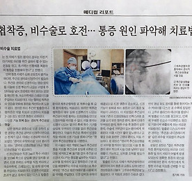 ebs명의 썸네일형 리스트형 뒷골이 댕기는 경추성두통 Cervicogenic headache 원인과 치료 안녕하세요. 문동언통증의학과입니다. 오늘은 경추성두통의 원인과 치료에 대해서 알려드리겠습니다. 경추성두통 자가진단입니다. 병원을 찾는 두통 환자 중 경추성두통 환자가 적지 않습니다. 경추성두통은 그 근원이 목 부위에 있습니다. 경추(목뼈)의 척수신경, 신경절, 후관절, 근육, 인대 등에서 유래하는 두통이 경추성두통인 것입니다. 목의 외상이 경추성두통의 주요 요인으로 꼽힙니다. 경추성두통의 일부 증상은 편두통이나 긴장형두통과 비슷하여 정확한 감별이 힘든 경우가 많기 때문에 약을 먹어도 통증이 조절되지 않을 때는 가능한 빨리 전문가의 도움을 받는 것이 필요합니다. 치료는 약물치료, 도수치료(manual therapy), 주사치료, 수술치료 등이 있습니다. 주사치료는 대후두신경, 소후두신경, 경추(목뼈) 위쪽.. 더보기 엉덩관절의 퇴행성관절염(0steoarthritis of hip joint) 안녕하세요. 문동언통증의학과입니다. 오늘은 엉덩관절의 퇴행성관절염에 대해서 알아보겠습니다. 엉덩관절의 퇴행성관절염 자가진단입니다. 퇴행성관절염하면 흔히 무릎질환을 떠올립니다. 하지만 퇴행성관절염은 무릎에만 생기는 것이 아닙니다. 상체와 엉덩이를 지탱하는 엉덩관절에도 퇴행성관절염이 생기며, 최근 노년층이 증가하면서 엉덩관절의 퇴행성관절염이 느는 추세입니다. 엉덩관절의 퇴행성관절염은 오랜 기간 체중 부하에 의해 뼈 사이의 관절 연골이 마모되고, 골막에 염증이 생기며, 뼈돌기에 이상이 초래되어 나타납니다. 골반 영상검사를 하면 엉덩관절의 간격이 줄어있거나 뼈돌기가 생긴 모습 등이 관찰됩니다. 치료는 통증정도에 따라 달라집니다. 통증이 심하지 않을 때: 약물치료+운동 통증이 심할 때: 주사치료 인공관절치환술 문.. 더보기 엉덩관절통증(대퇴관골구충돌증후군)에 좋은 운동과 스트레칭 안녕하세요. 문동언통증의학과입니다. 오늘은 엉덩관절통증에 좋은 운동과 스트레칭을 알려드리겠습니다. 대퇴관골구충돌증후군 자가진단해보세요. 엉덩관절의 지붕 뼈 끝과 대퇴골의 목 부분이 충돌을 일으켜 비구순과 관절연골에 손상을 초래합니다. 엉덩관절을 자극하는 무리한 자세가 대퇴관골구충돌증후군의 원인이 됩니다. 대퇴관골구충돌증후군의 치료방법입니다. 증상이 심하지 않을 경우엔 보존적치료를 하며, 통증이 심할 경우에는 국소마취제를 관절 내에 주사합니다. 대퇴관골구충돌증후군에 좋은 운동과 스트레칭방법입니다. 엉덩관절 스트레칭 엉덩이 근육강화운동 운동 시 주의사항을 꼭 읽어보시고, 통증이 심해질 경우 운동은 중지하고 전문의와 상의하세요. 더보기 긴장형 두통(Tension type headache) 원인과 치료 안녕하세요. 문동언통증의학과입니다. 오늘은 긴장형 두통의 원인과 치료방법에 대해서 알려드리겠습니다. 자가진단 해보세요. 긴장형두통은 1년에 전체 인구의 30~78%가 겪을 만큼 아주 흔한 병입니다. 일생을 살아가며 대부분의 사람들이 한 번쯤은 긴장형두통을 앓는다고 해도 과언이 아니며, 두통 가운데서도 가장 흔합니다. 긴장성 두통과 편두통의 원인, 증상, 완화법입니다. 과거에는 긴장형두통이 단순히 정신적인 원인에 의해 발생한다고 생각했었습니다. 그러나 최근 연구들은 신경생물학적 기전이 긴장형두통의 발병에 관여한다는 결과를 내놓고 있습니다. 긴장형두통은 남성보다 여성에게 더욱 흔하며, 전체 긴장형두통 환자의 40%는 어떤 형태든 두통의 가족력이 있다고 보고되고 있습니다. 긴장형두통은 보통 강도가 약해서 병원.. 더보기 대전자증후군에 좋은 운동과 스트레칭 안녕하세요. 문동언통증의학과입니다. 오늘은 대전자증후군에 좋은 운동과 스트레칭에 대해 알아보겠습니다. 대전자증후군 자가진단입니다. 대전자 통증 증후군이란 말 그대로 대전자에 통증이 생기는 질환입니다. 대전자 통증 증후군이 생기는 이유에 대해서 알아보겠습니다. 대전자 통증 증후군의 가장 중요한 치료는 휴식입니다. 예방을 위해서는 운동 전 충분한 스트레칭으로 근육과 인대를 풀어주어야 합니다. 대전자증후군에 좋은 운동과 스트레칭 방법입니다. 엉덩관절 스트레칭1 엉덩관절 스트레칭2 엉덩이 근육강화 운동 더보기 척추관협착증, 동맥경화성 혈관폐색증과 다르다! 오랜 기간에 걸쳐 허리에 통증이 있고 다리에 저린 느낌이 나는 증상이 연세있으신 분들에게 천천히 나타났다면, 척추관협착증을 생각해봐야 합니다. 척추 안에는 신경다발이 지나는 척추관이 있는데, 이 관이 좁아져 신경이 눌리면 이런 증상이 나타나기 때문입니다. 척추관이 노화현상에 의해 좁아집니다. 척추관협착증과 구별해야 할 감별질환이 있습니다. 바로 동경맥경화성 혈관폐색증입니다. 특히 고혈압이나 당뇨병, 고지혈증 등과 같은 만성질환을 앓는 분은 다리가 아프고 저린 증상이 생길 때 동맥경화성 혈관폐색증을 반드시 염두에 두어야 합니다. 걸으면서 다리 근육을 사용할 때 혈관이 좁거나 막혀있으면 산소를 충분히 공급해 주지 못해 저린 증상이 나타납니다. 이 때는 근육을 쓰지만 않아도 